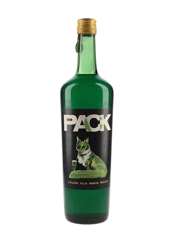 A litre bottle of Pack Mint liqueur from Italy. We estimate this was bottled in the 1950s.