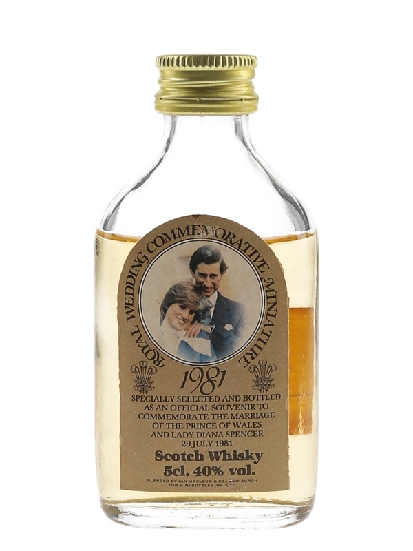 A miniature bottle Royal Wedding Scotch Whisky, released to celebrate the marriage of The Prince Of Wales and Lady Diana Spencer 29 July 1981. This was imported to the German market by Robert Meisner.