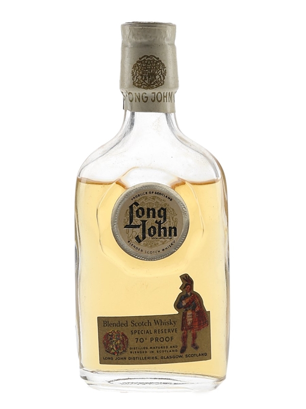 A miniature bottle of Long John Special Reserve Blended Scotch Whisky, distilled, matured and blended in Scotland by Long John Distilleries. We estimate this was bottled in the 1950s to 1960s.