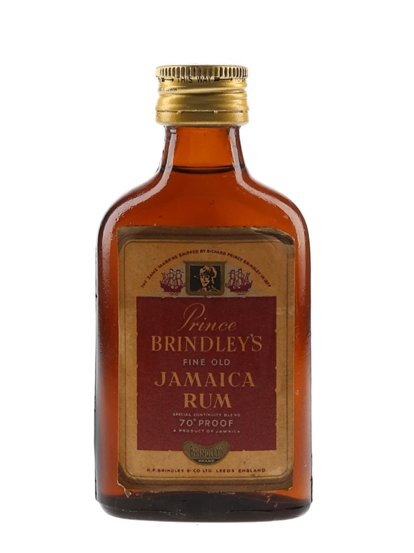 A miniature bottle of Prince Brindley's Fine Old Jamaica Rum produced by R.P. Brindley & Co. Ltd. We estimate this was bottled in the 1960s.