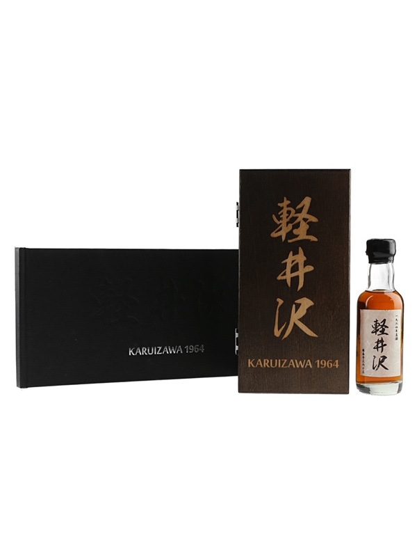 A miniature bottle of Karuizawa 1964 Single Cask Japanese Malt Whisky. This was distilled on 1 September 1964, aged for 48 years in a single sherry cask and bottled at natural cask strength on 24 December 2012 at 57.7% ABV for Wealth Solutions.