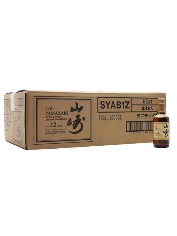 A case of 48 miniature bottles of The Yamazaki 12 Year Old Single Malt Whisky from Japan. These are presented in the original cardboard box.