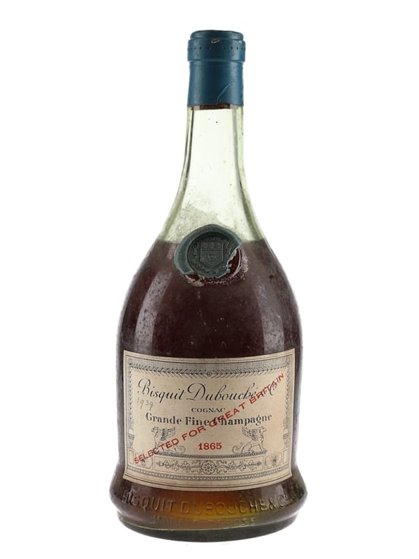 A bottle of Bisquit Dubouché 1865 Grande Fine Champagne Cognac, Selected for Great Britain. We estimate this was bottled in the 1930s.