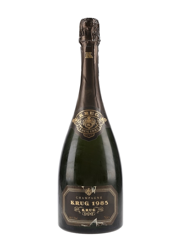 A bottle of Krug 1985 vintage Champagne.