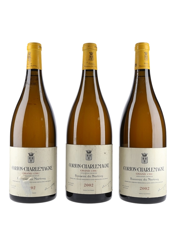 This lot contains three magnums of 2002 Corton-Charlemagne from Domaine Bonneau du Martray, picked from one of Burgundy's most celebrated hillside vineyards.