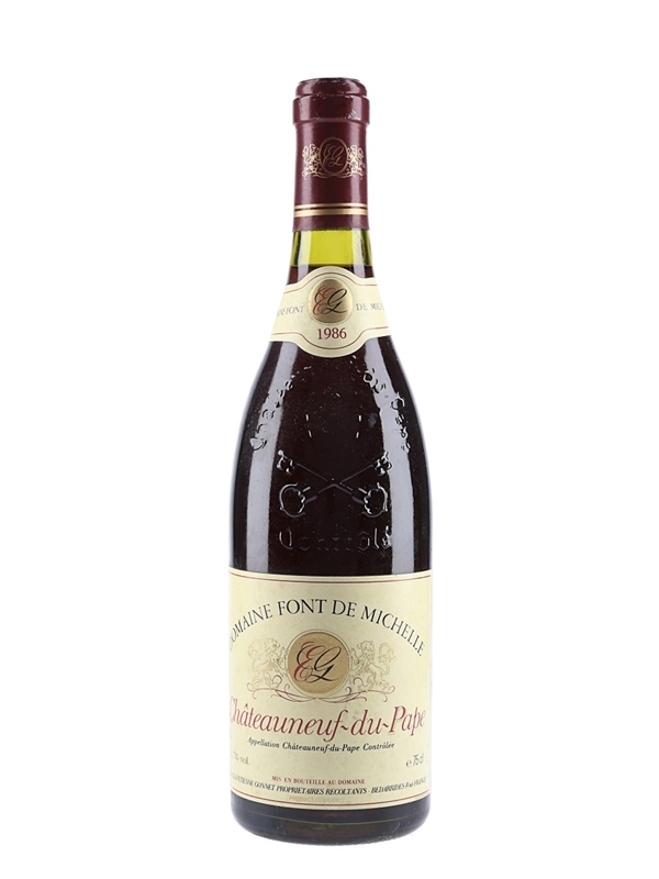 A bottle of 1986 Domaine Font de Michelle Châteauneuf du Pape from producers Les Fils d'Etienne Gonnet, from the Southern Rhône's most celebrated appellation.