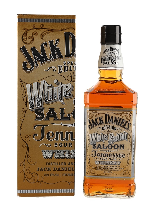 A bottle of Jack Daniel's Tennessee Sour Mash Whiskey originally released to celebrate 120 years since the opening of the White Rabbit Saloon in Lynchburg. The bar was once owned by Mr Jack Daniel himself but has since moved out of the town.
