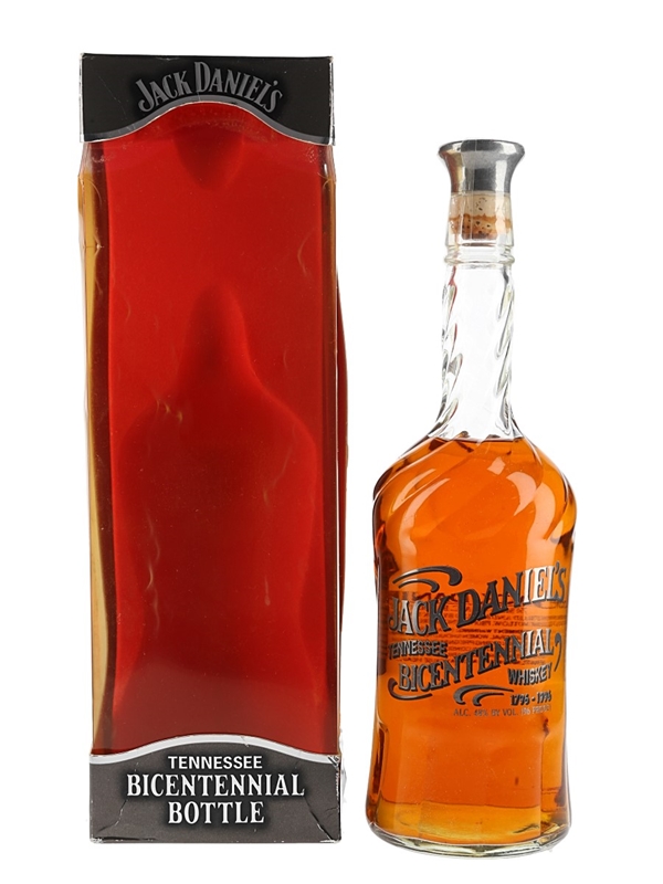 A bottle of Jack Daniel's Bicentennial, bottled at 48% ABV in 1996 to celebrate the 200th anniversary of the state of Tennessee. The bottle is a replica of the one designed by Mr Daniel himself to celebrate the 100th anniversary of the state in 1896. This comes in a presentation box with a certificate of authenticity and a letter.