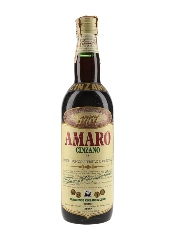 A bottle of Cinzano Amaro, a bitter tonic liqueur produced in Spain. We estimate this was bottled in the 1970s.