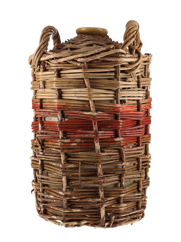 A 4.5 litre flagon of Royal Navy Rum, presented in the traditional wicker casing. This was bottled pre 1970s.