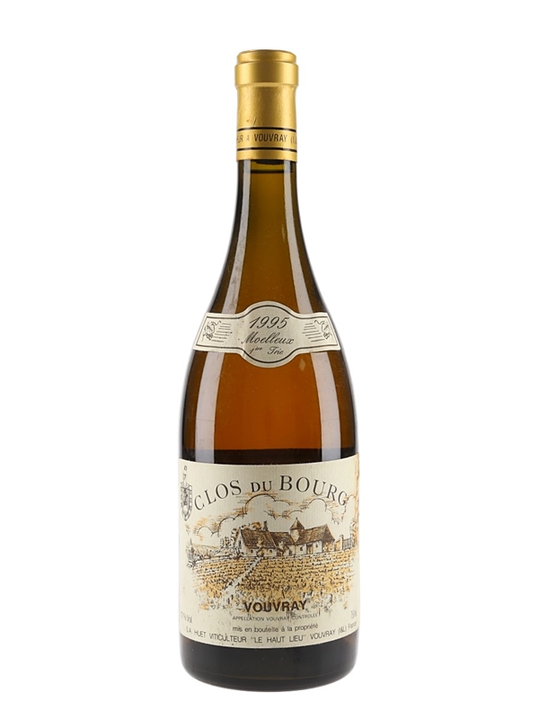 A bottle of Clos du Bourg Vouvray Moelleux 1995 Premiere Trie from France's Loire valley. This was produced and bottled by Huet Viticulteur using biodynamic techniques.