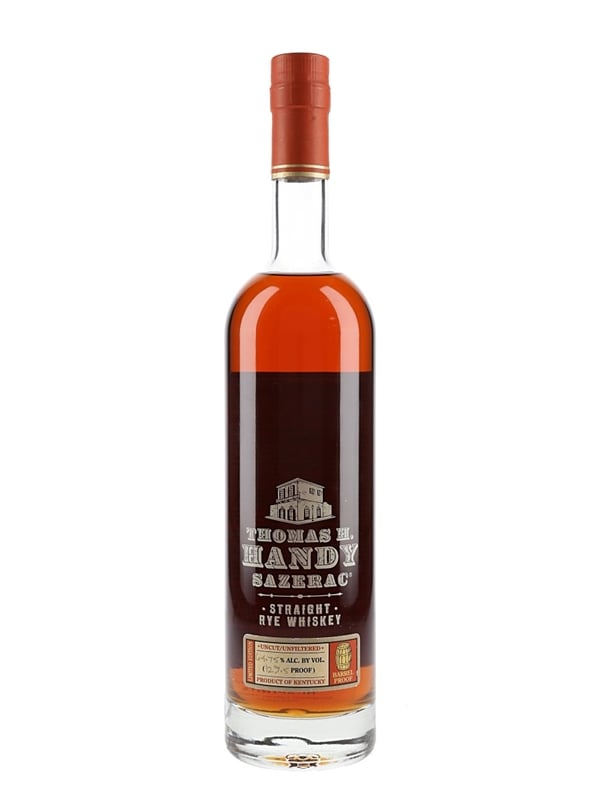 A bottle of Thomas H Handy Sazerac Limited Edition Straight Rye Whiskey distilled in 2015, matured for 6 years and bottled at a cask strength of 64.75% ABV in 2021 as part of the Buffalo Trace Antique Collection.