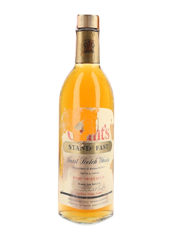 A bottle of Grant's Stand Fast Finest Scotch Whisky, blended and bottled by William Grant & Sons. We estimate this was bottled in the early 1970s.