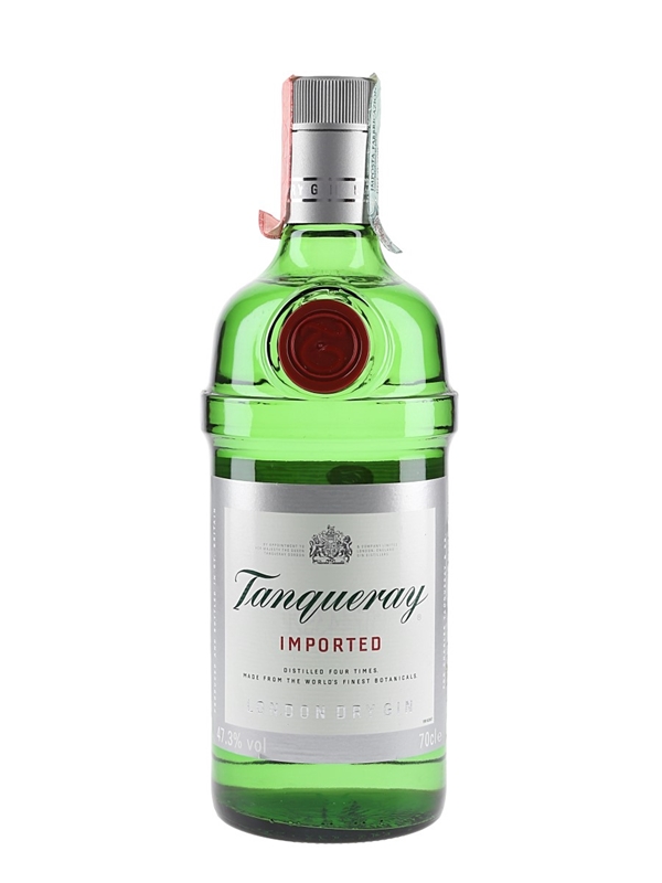A bottle of Tanqueray Imported London Dry Gin. This was imported to Italy and distributed by UDV Italia, we estimate in the 1990s.