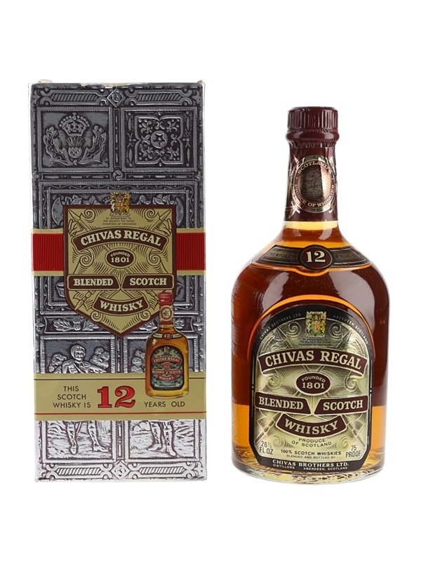 A bottle of Chivas Regal 12 Year Old Blended Scotch Whisky, blended by Chivas Brothers Ltd. We estimate this was bottled in the 1970s.