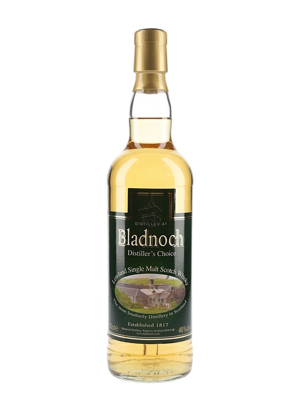 A bottle of Bladnoch Distillery's Choice Lowland Single Malt Scotch Whisky.