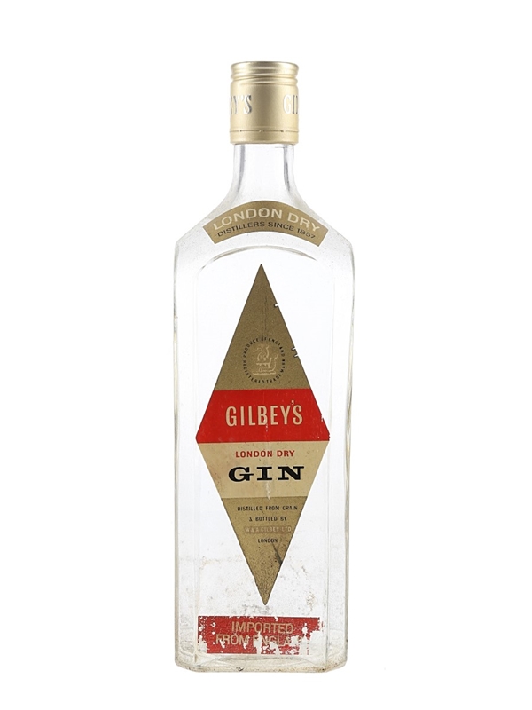 A bottle of Gilbey's London Dry Gin. We estimate this was bottled in the 1970s.