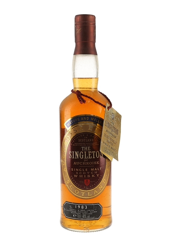 A bottle of The Singleton of Auchroisk 1983 Single Malt Scotch Whisky produced by Ruchill & Ross Limited. This was matured in oak casks for at least ten years. We estimate this was bottled in the 1990s.