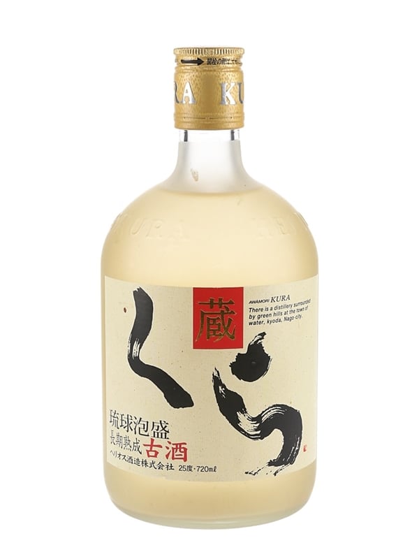 A bottle of Kura Awamori liqueur distilled in Okinawa, Japan. The bottling code indicates this was bottled in 2015.