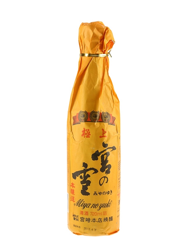 A bottle of Miyanoyuki Honjozo sake from Japan.