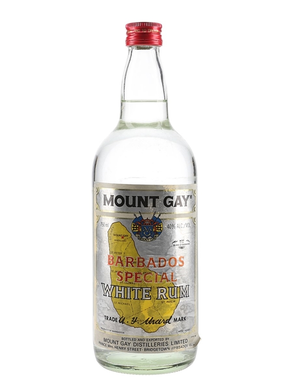 A bottle of Mount Gay Special White Rum, bottled and exported by Mount Gay Distilleries Limited, Prince Wm. Henry Street, Bridgetown, Barbados. We estimate this was bottled in the 1980s.
