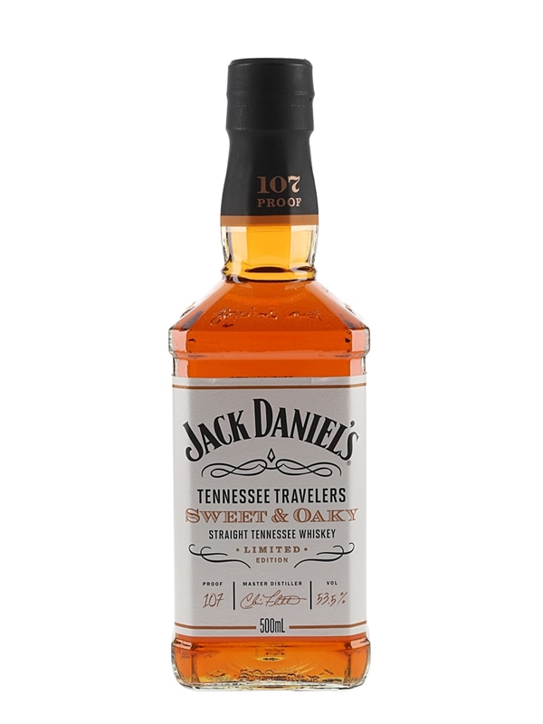 A limited edition 50cl bottle of Jack Daniel's Sweet & Oaky Straight Tennessee Rye Whiskey, part of the Tennessee Travelers series.