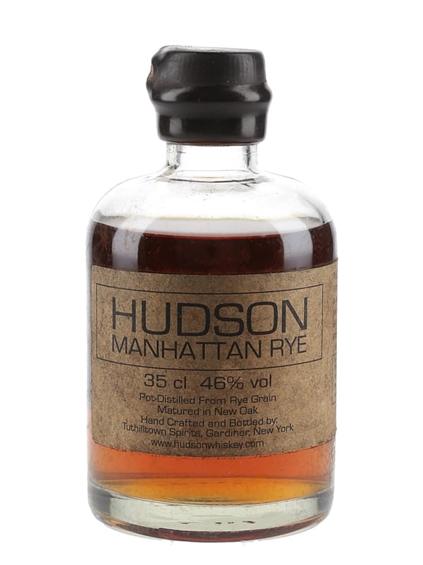 A 35cl bottle of Hudson Manhattan Rye, the first legal pot-still rye whiskey to be produced in New York's Hudson Valley in over 70 years. This was double distilled and matured in small American oak casks at the Tuthilltown Gristmill, a National Historic Site.