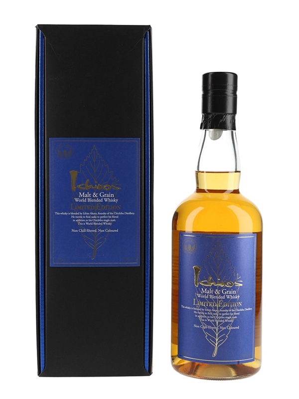 A limited edition bottle of Ichiro's Malt & Grain, a blend of whiskies from around the world created by Ichiro Akuto, founder of Chichibu distillery.