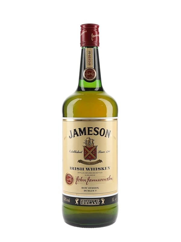 A litre bottle of Jameson Irish Whiskey, bottled at 43% ABV. We estimate these were bottled in the 1990s.