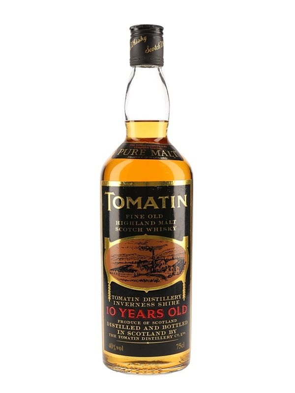 A bottle of Tomatin 10 Year Old Fine Old Highland Malt Scotch Whisky. We estimate this was bottled in the 1980s.
