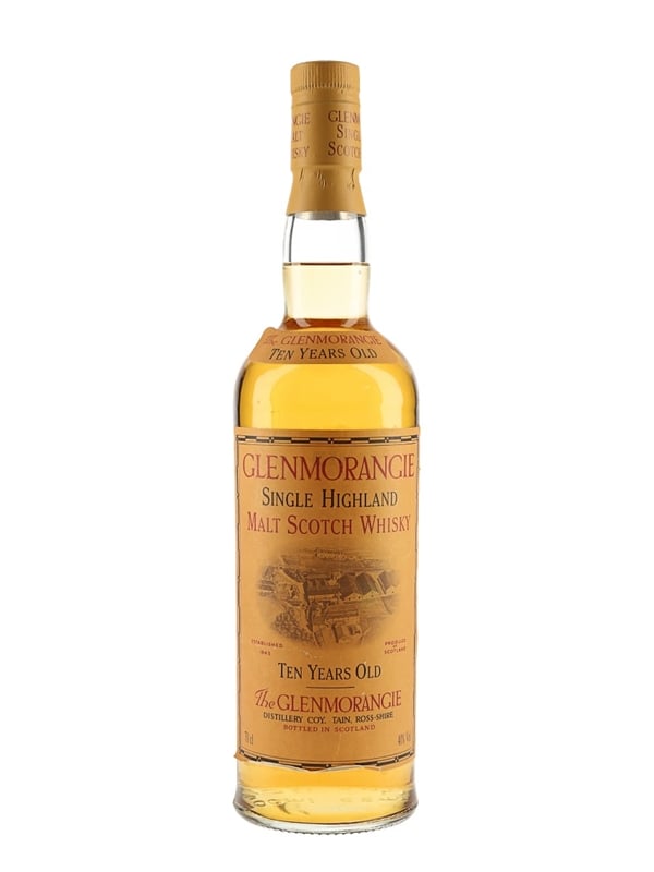 A bottle of Glenmorangie 10 Year Old Single Highland Malt Scotch Whisky. We estimate this was bottled in the 1990s.
