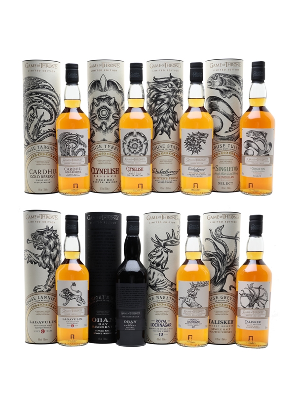 Game Of Thrones Whiskies Set Cardhu, Clynelish, Dalwhinnie, Glendullan, Lagavulin, Oban, Royal Lochnagar & Talisker 8 x 70cl