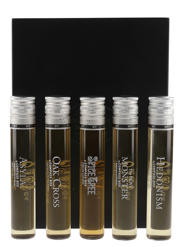 This lot contains five Tutored Tasting Samples from the Compass Box Range.