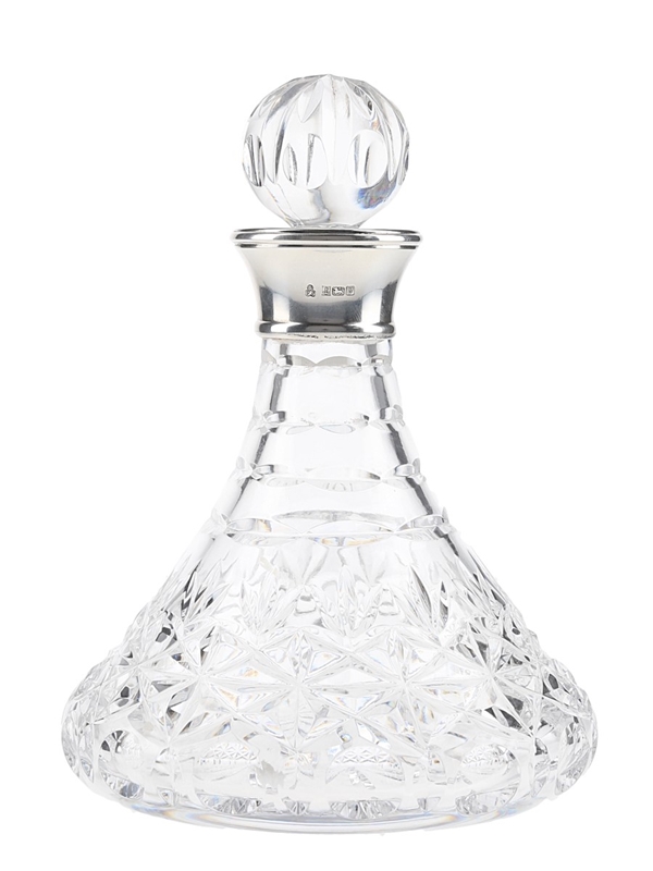 Waterford Lismore Decanter & Stopper Sterling Silver Collar 14cm Tall x 12.5cm