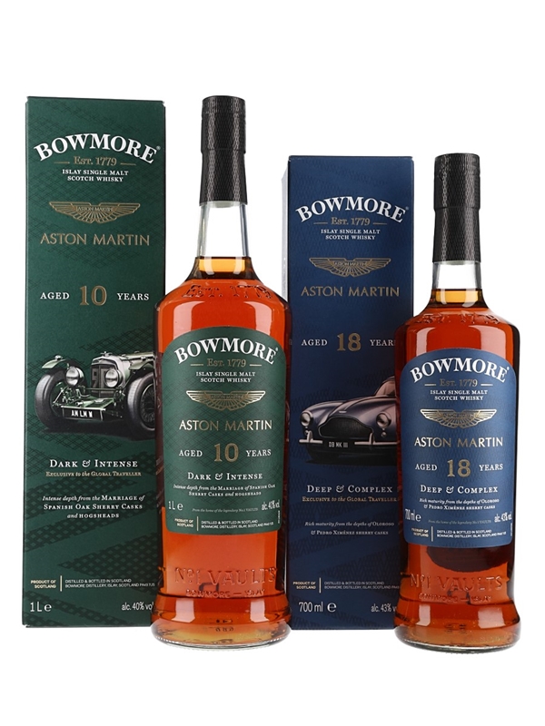 Bowmore 10 & 18 Year Old Aston Martin 2 x 70cl & 100cl