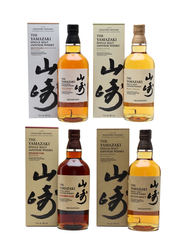 The Yamazaki 2022 Cask Series Tsukuriwake Selection contains four bottles of Single Malt Japanese Whisky including Mizunara Japanese Oak Cask, Puncheon, Peated Malt and Spanish Oak.
