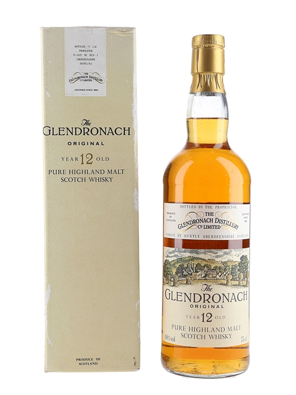 A bottle of The Glendronach 12 Year Old Original Pure Highland Malt Scotch Whisky. We estimate this was bottled in the 1980s.
