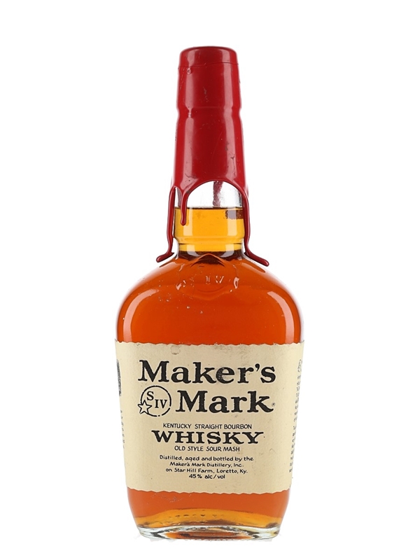 A bottle of Maker's Mark Handmade Kentucky Straight Bourbon Whisky bottled at 45% ABV.
