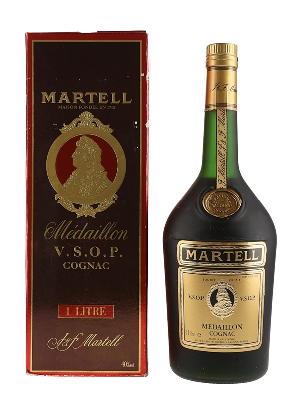 A litre bottle of Martell Medaillon VSOP Cognac. This was bottled for the duty free market, we estimate in the 1980s.