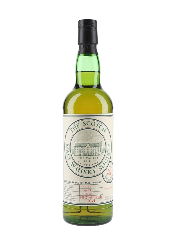 A 1991 vintage whisky from the Scotch Malt Whisky Society. This whisky was distilled at Glen Grant distillery in October 1991, matured for 11 years, and bottled in April 2003 at 60.7% ABV.