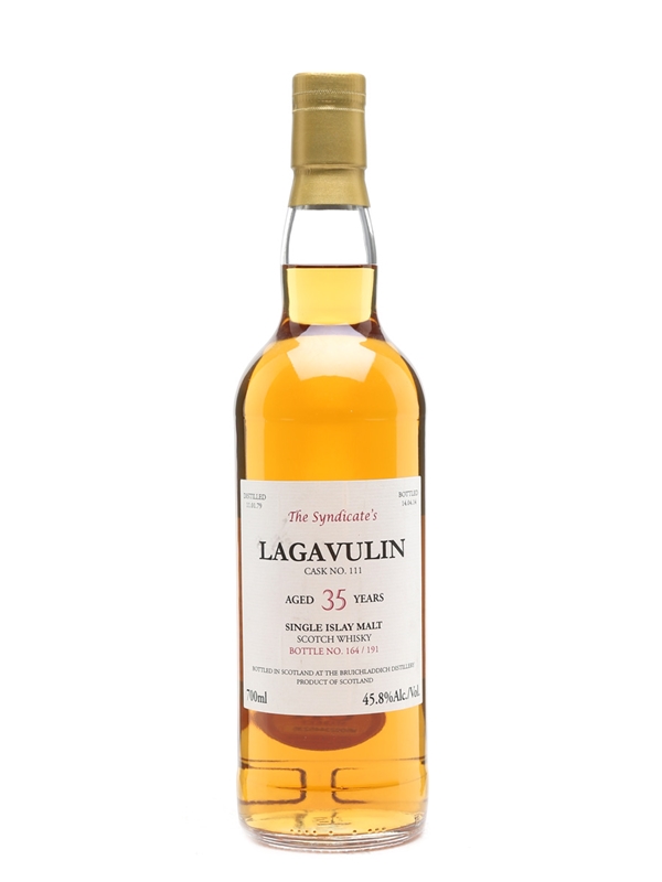 A bottle of 1979 Lagavulin 35 Year Old, bottled from a single cask by The Syndicate at Bruichladdich distillery in 2014.