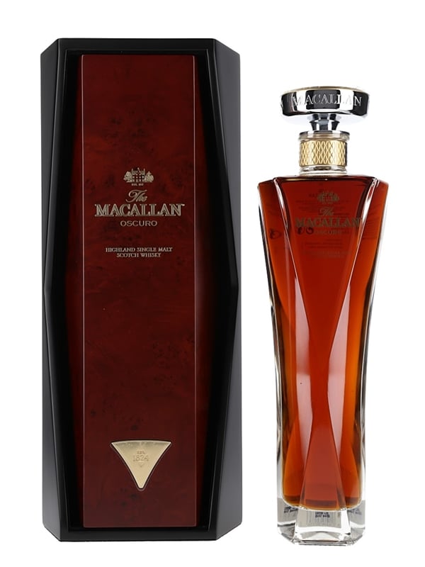 A bottle of The Macallan Oscuro Highland Single Malt Scotch Whisky from The 1824 Collection. This was drawn exclusively from sherry seasoned oak casks filled between 1987 and 1997, a high proportion of which are first fill.