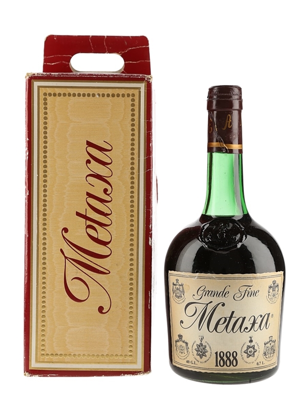A bottle of Metaxa 1888 Grande Fine brandy. We estimate this was bottled in the 1970s.