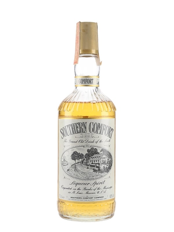 A bottle of Southern Comfort, The Grand Old Drink of the South, Siqueur Spirit, Originated on he Banks of the Mississippi in St Louis, Missouri, USA. It was bottled at 40% ABV. We estimate this was bottled in the 1980s.