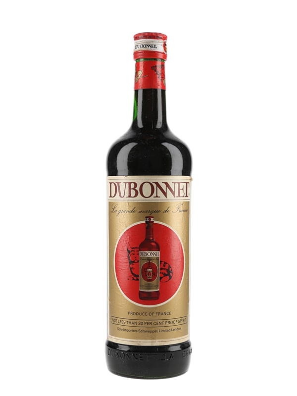 A 88cl bottle of Dubonnet Wine Aperitif, a fortified wine flavoured with herbs, spices, and quinine. We estimate this was bottled in the 1970s.