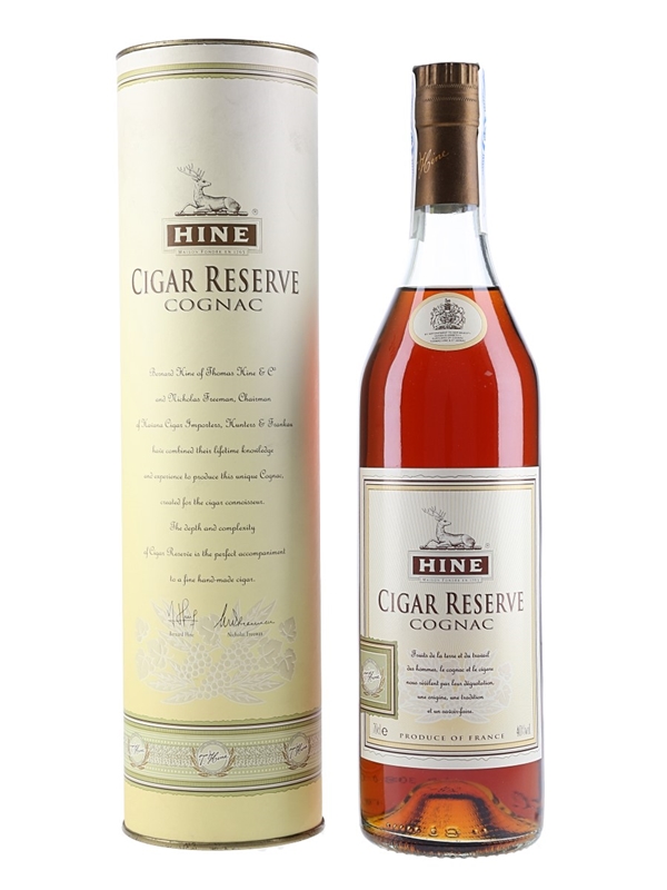 A bottle of Hine Cigar Reserve Cognac, specially released to accompany a fine cigar.