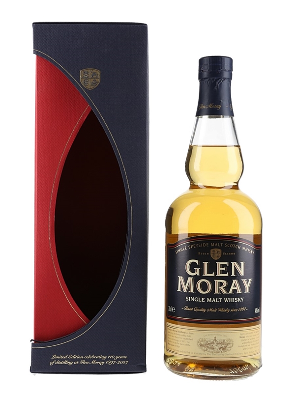 A bottle of Glen Moray Single Malt Scotch Whisky.