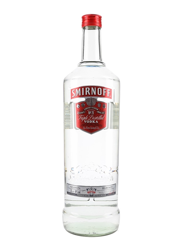 A 300cl bottle of Smirnoff Triple Distilled Vodka produced in the UK.