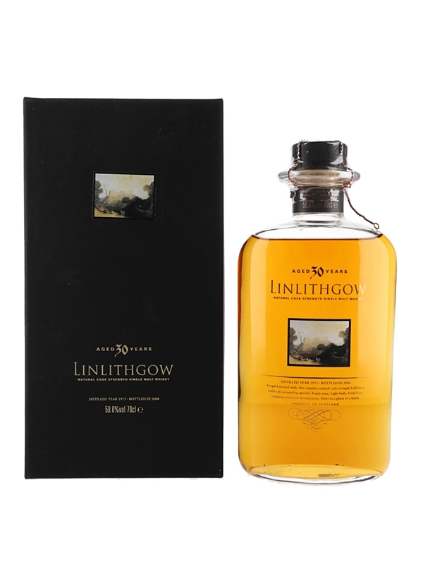 A bottle of 1973 Linlithgow 30 Year Old Single Malt Whsiky, bottled at cask strength in 2004 for Diageo's annual Special Releases.