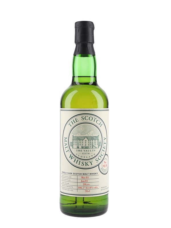A 1981 vintage whisky from the Scotch Malt Whisky Society. This whisky was distilled at Lochside distillery in April 1981, matured for 20 years and bottled at 61% ABV in June 2001.